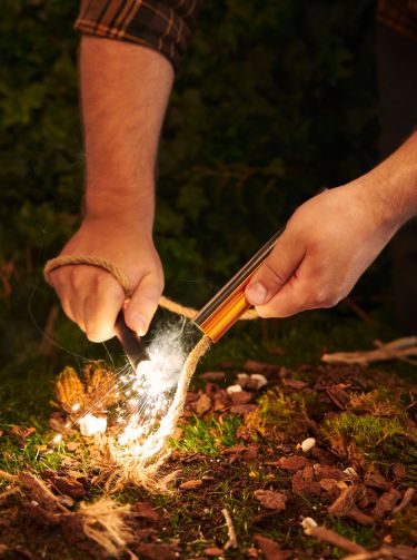 Rained this weekend at the lake so I decided to give the new addition to my gear bag a try. Took me several attempts to get it lit at first, but once I got the hang of using the striker’s serrated end to fray the rope, I could light it with 1 or 2 strikes every time. This is a must have for survivalists! I will be ordering a few more for all my bags.